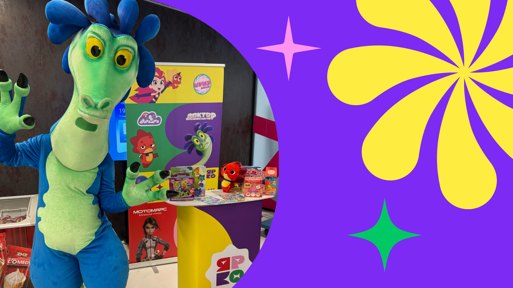 В рамках Саммита компания «ЯРКО» также провела серию встреч с потенциальными партнерами, представила проекты на фирменном стенде и организовала активную зону с героями новых проектов: «Доктор Динозавров» и «Технолайк». Они знакомили гостей с брендами и создавали атмосферу живого общения, что стало ярким акцентом деловой программы мероприятия.
